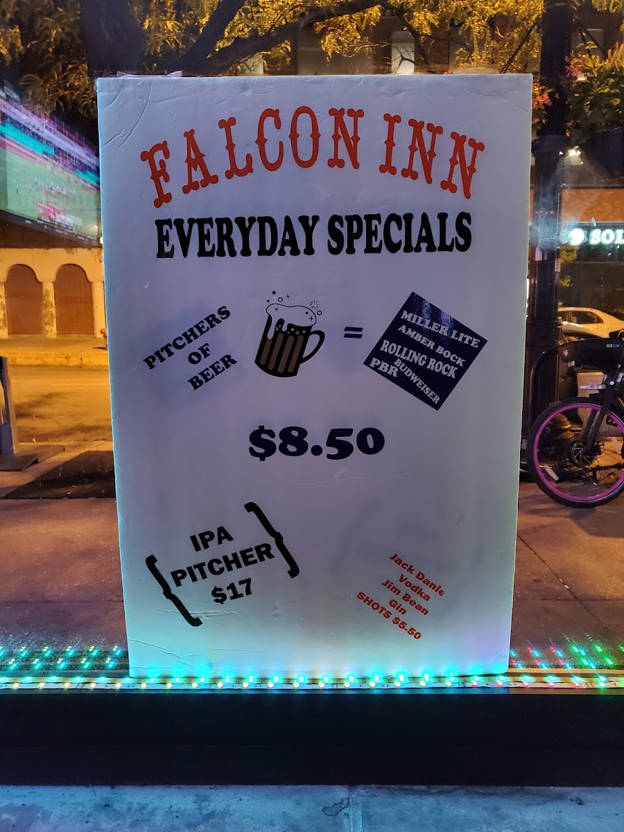 The Falcon Inn offers a straightforward menu that fits its laid-back, dive bar vibe. You’ll find classic bar fare alongside a solid selection of drinks designed for easy, casual enjoyment. Whether you’re stopping by for a quick beer or settling in for a night with friends, the menu complements the relaxed environment perfectly.